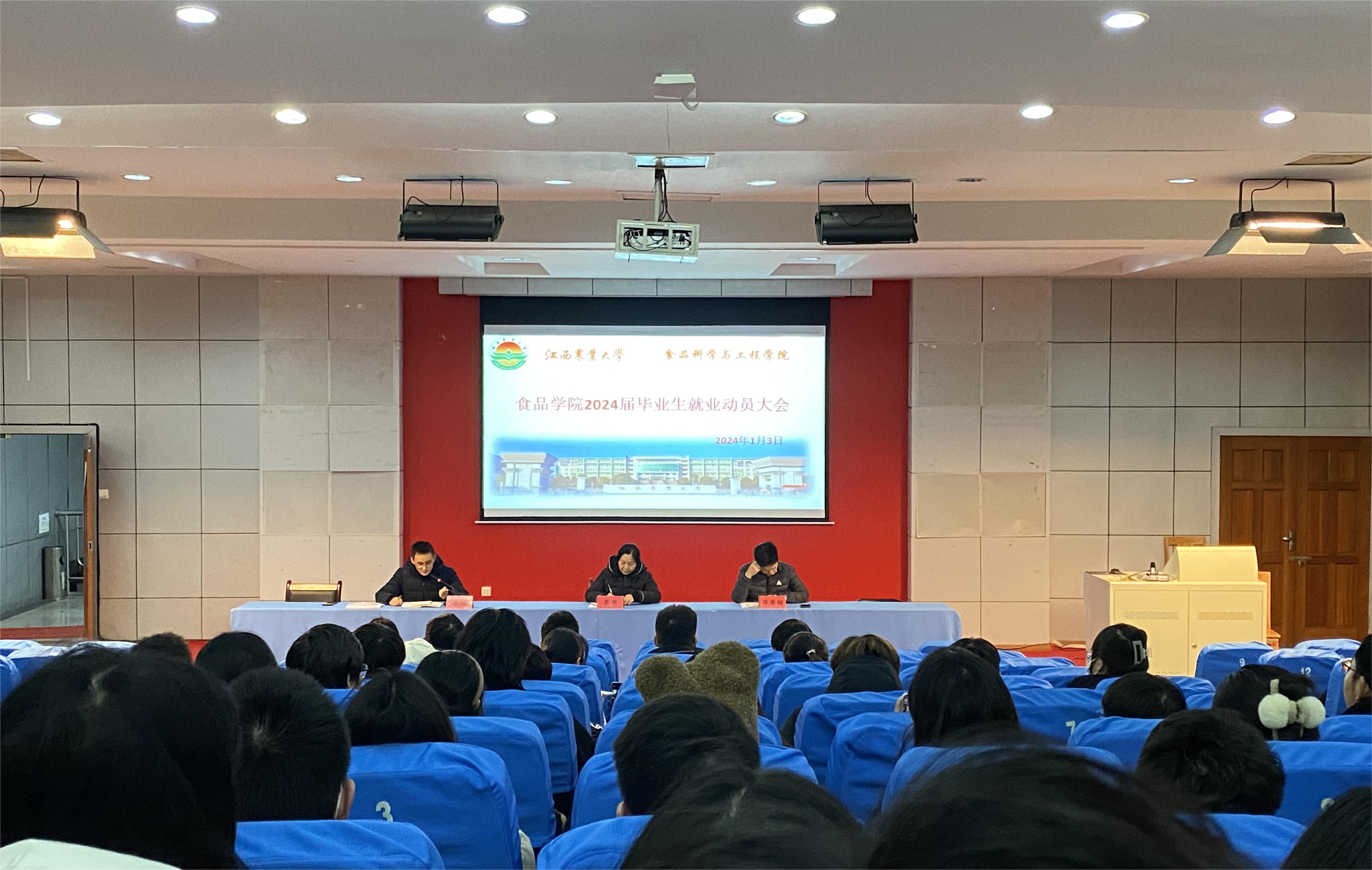 为深入学习贯彻习近平总书记考察江西重要讲话精神,聚焦“走在前、勇争先、善作为”目标要求,落实2024届全省普通高校毕业生就业创业工作视频会议和学校2024年就业工作部署会议精神,推动毕业生更高质量就业,1月3日晚,我院2024届毕业生就业动员大会在二教307召开。学院党委书记王兰、院长涂勇刚、党委副书记李煊、教学办主任、毕业班班主任、辅导员及全体2024届本科毕业生参加会议,会议由李煊主持。